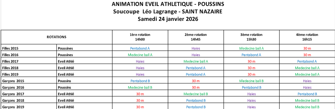 Le 24 janvier à la soucoupe de Saint-Nazaire aura lieu un quadrathlon indoors pour les éveils-poussins.